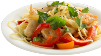 mit Olivenöl, Hähnchenbruststreifen, Paprika, frische Champignons und Zwiebeln